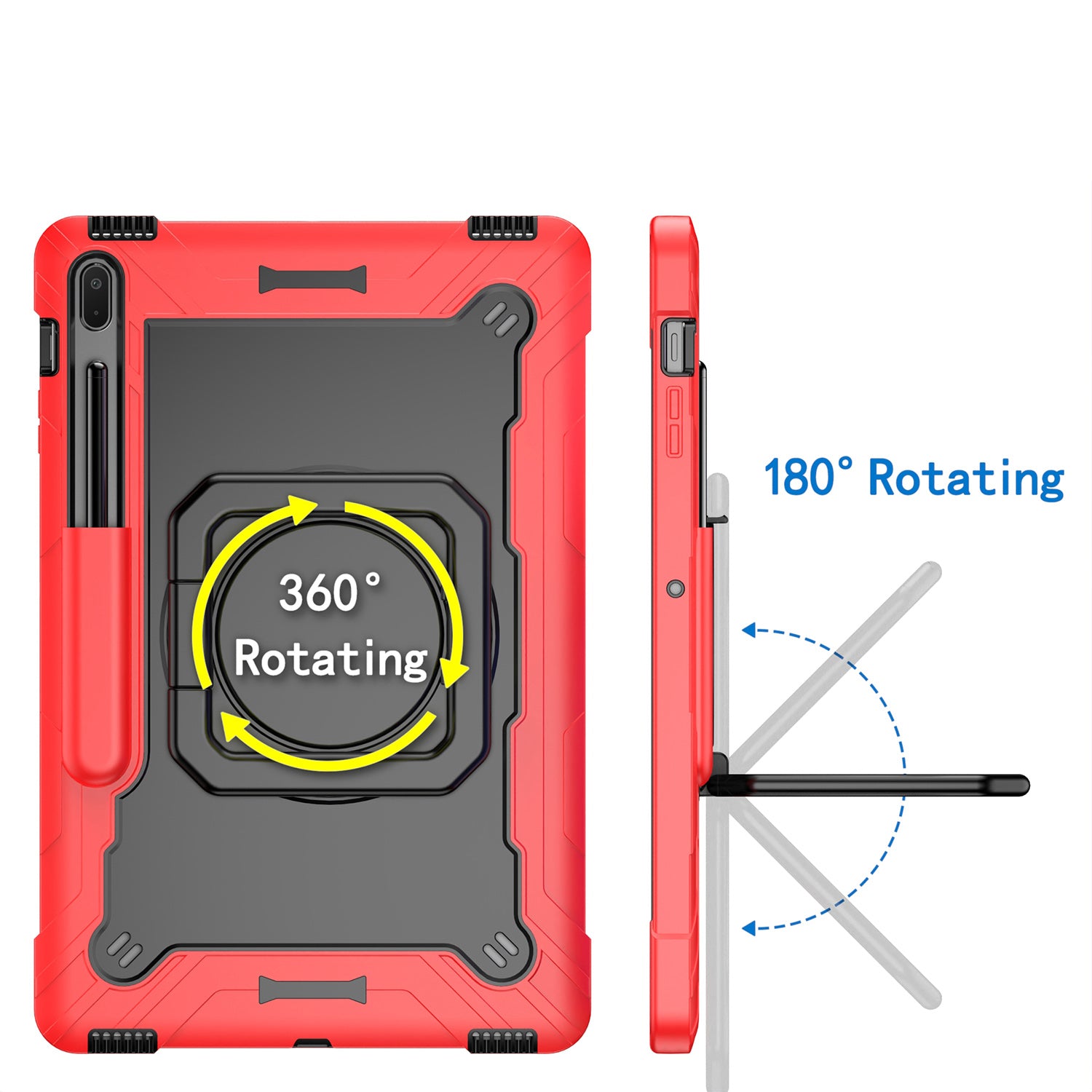 Red / Black Shockproof Tablet Tough Cover 360° Rotating Kickstand Foldable Stand and Shoulder Strap Military Grade Drop Tested Protective Cases