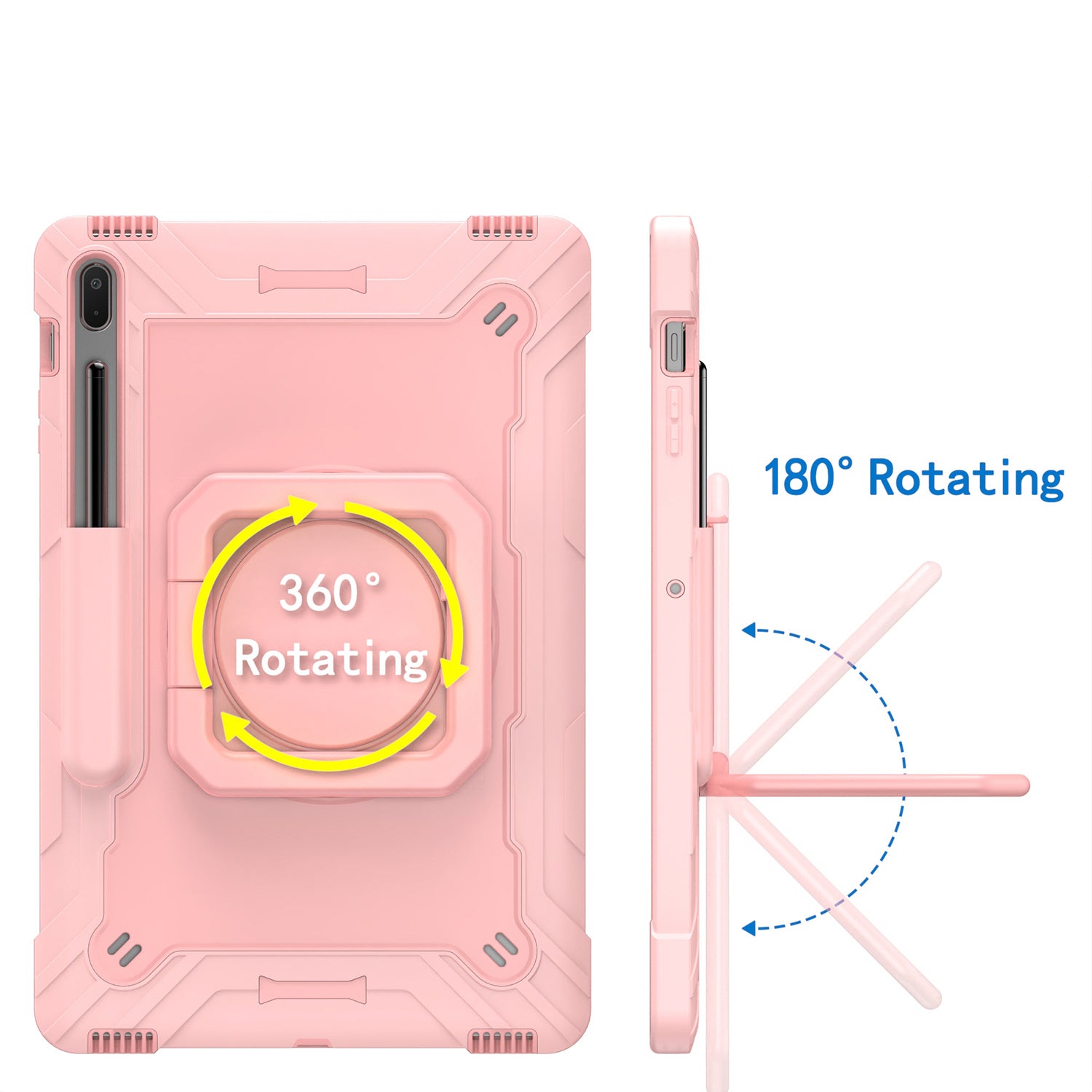 Rose Gold Shockproof Tablet Tough Cover 360° Rotating Kickstand Foldable Stand and Shoulder Strap Military Grade Drop Tested Protective Cases