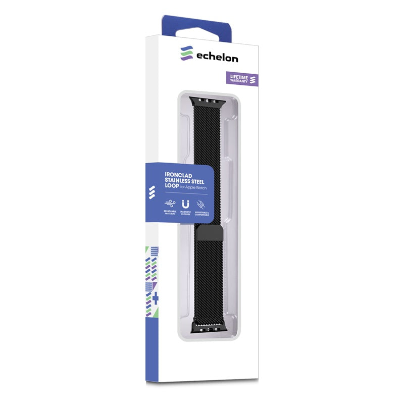 echelon Ironclad Stainless Steel Loop for Apple Watch Series 9 41mm/Watch Series 10 42mm / Watch SE (2022) 40mm - Black Apple Watch Accessories Black