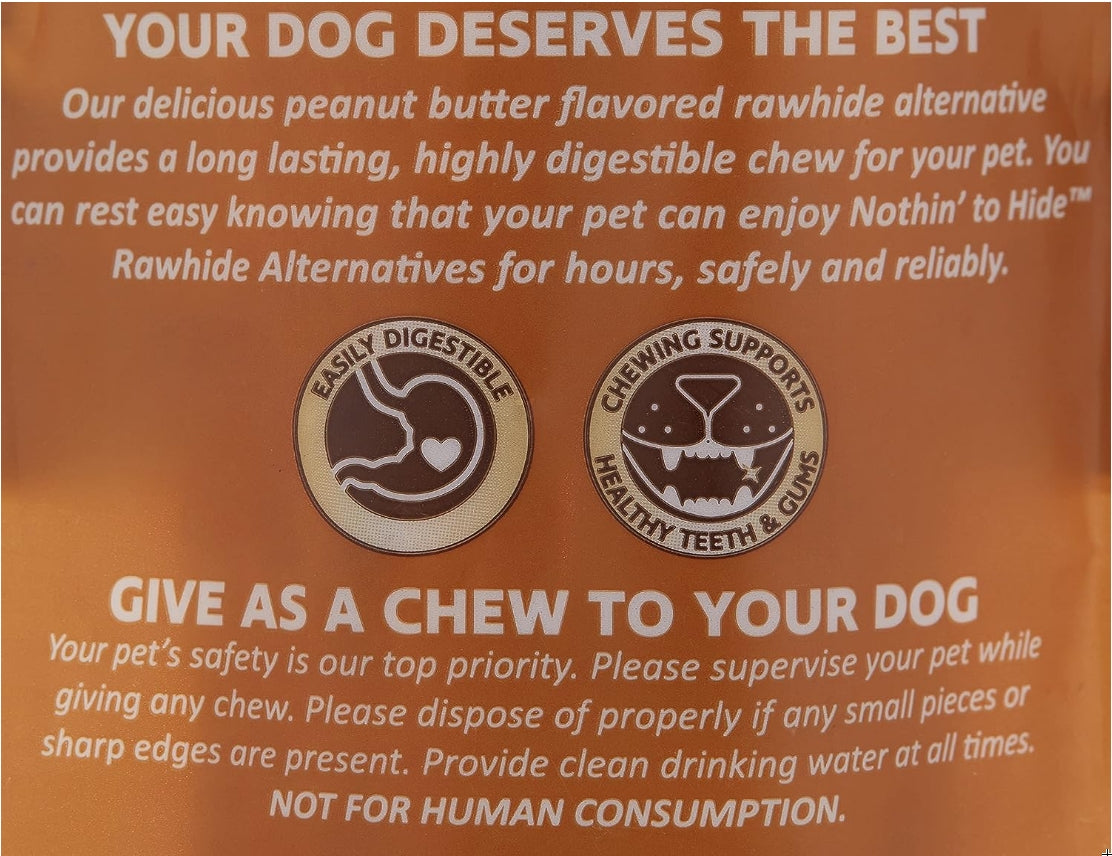 Nothin to Hide chews are highly digestible, collagen based chews for dogs. Available in a wide range of sizes and shapes, our satisfying peanut butter flavored chews are sure to offer a safe, flavorful chewing experience for your pets.