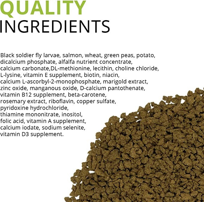 Fluval Bug Bites granules contain up to 40% nutrient-rich Black Soldier Fly larvae as the #1 ingredient. Whole Salmon proteins provide a rich source of Omega-3 and 6 to support healthy skin, scales, and fins. The sinking micro granules (1.4-1.6 mm) let bottom feeders feed at their accustomed depth. Bug Bites are sustainably processed in small batched for optimal quality and freshness. Made in Canada.