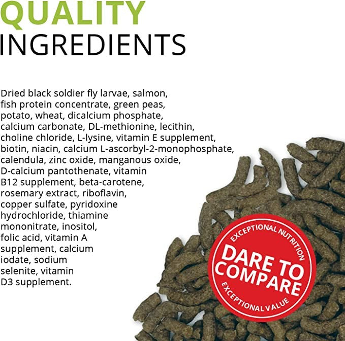 Fluval Bug Bites granules contain up to 40% nutrient-rich Black Soldier Fly larvae as the #1 ingredient. Whole Salmon proteins provide a rich source of Omega-3 and 6 to support healthy skin, scales, and fins. The sinking stick pellets (17-20 mm) let bottom feeders feed at their accustomed depth. Bug Bites are sustainably processed in small batched for optimal quality and freshness. Made in Canada.