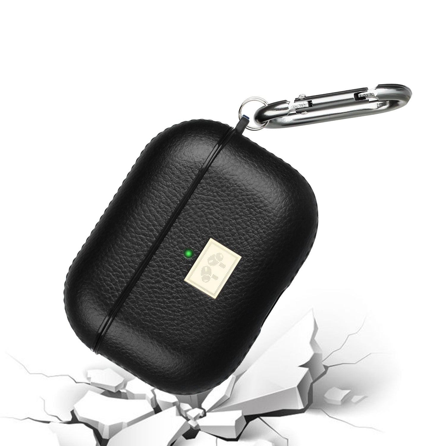 Apple AirPods 3 (2021) Luxury Leather Grain Textured TPU with Carabiner [Front LED Visible] Shockproof Protective Skin