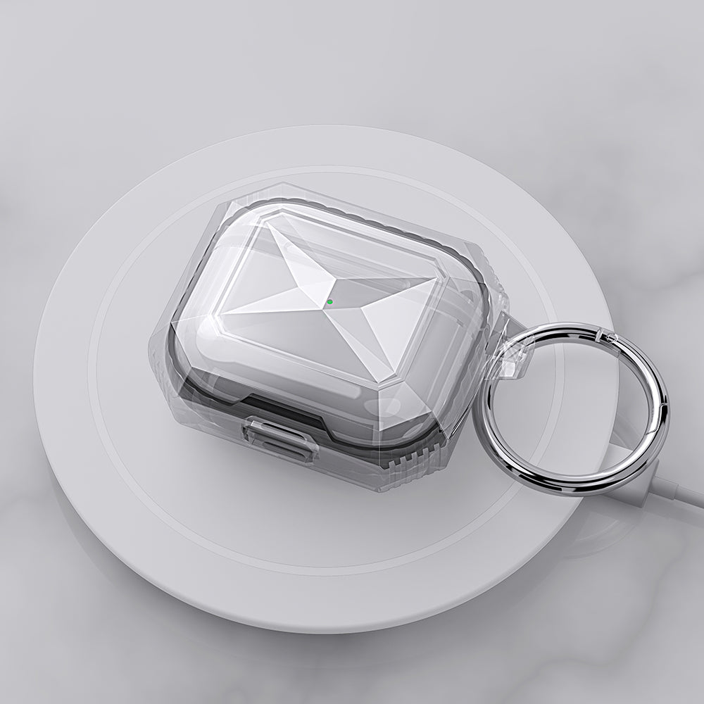 360° Full Protective Dustproof Hybrid Transparent Shockproof Case Accessories with Carabiner Protector Wireless Charging Earbuds Cover