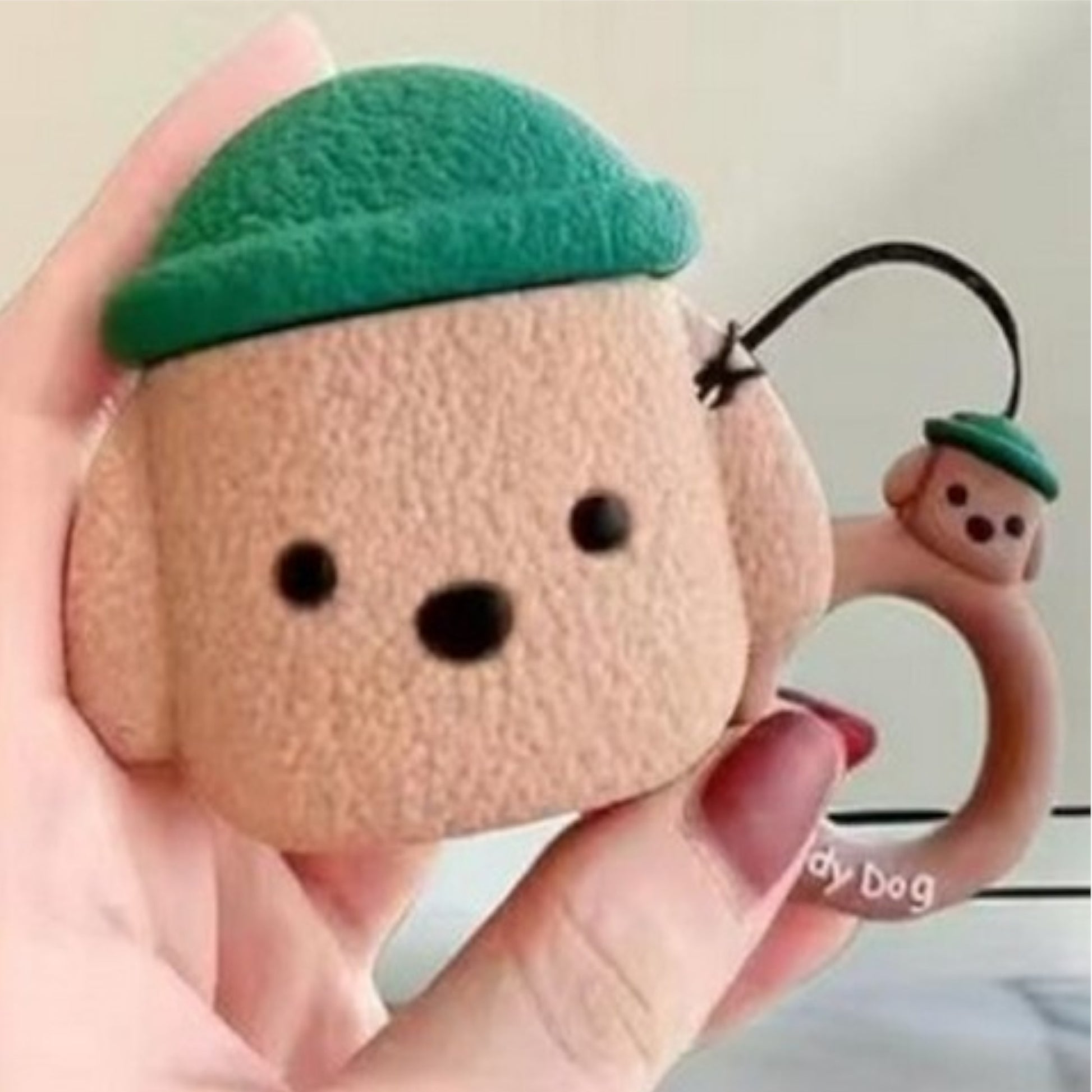 For Apple AirPods 4 Hybrid Cute 3D Fun Design Silicone Skin Cartoon Characters with Keychain Buckle Holder Rubber TPU Soft Cover Case Cover Dog