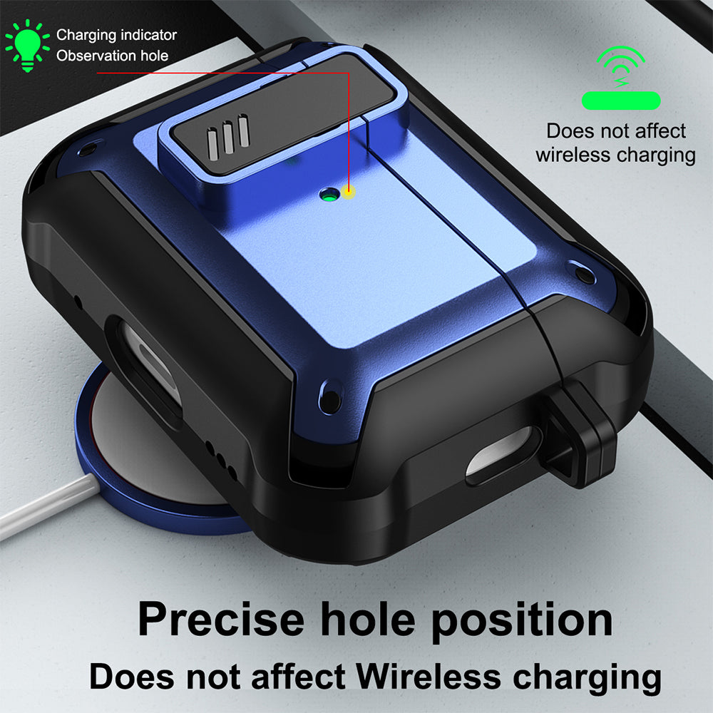 Tough Hybrid Military Cool AirPod Case Secure Lock Shockproof Heavy Duty Dual Layer Armor Full Body Drop Protection Cover Hybrid Rugged Case with Carabiner Keychain Cover