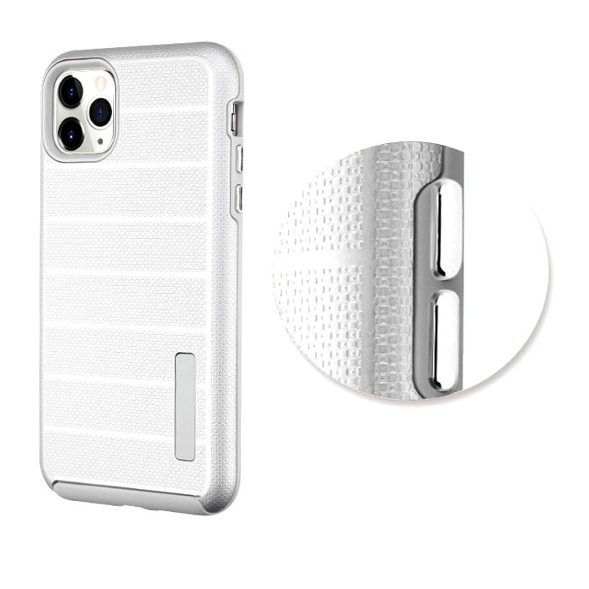 For Apple iPhone 11 (6.1") Texture Brushed Line Shockproof Rugged Shield Non-Slip Hybrid Dual Layers Soft TPU + Hard PC Back Silver Phone Case Cover