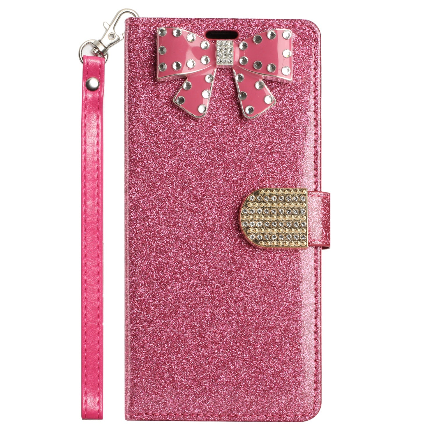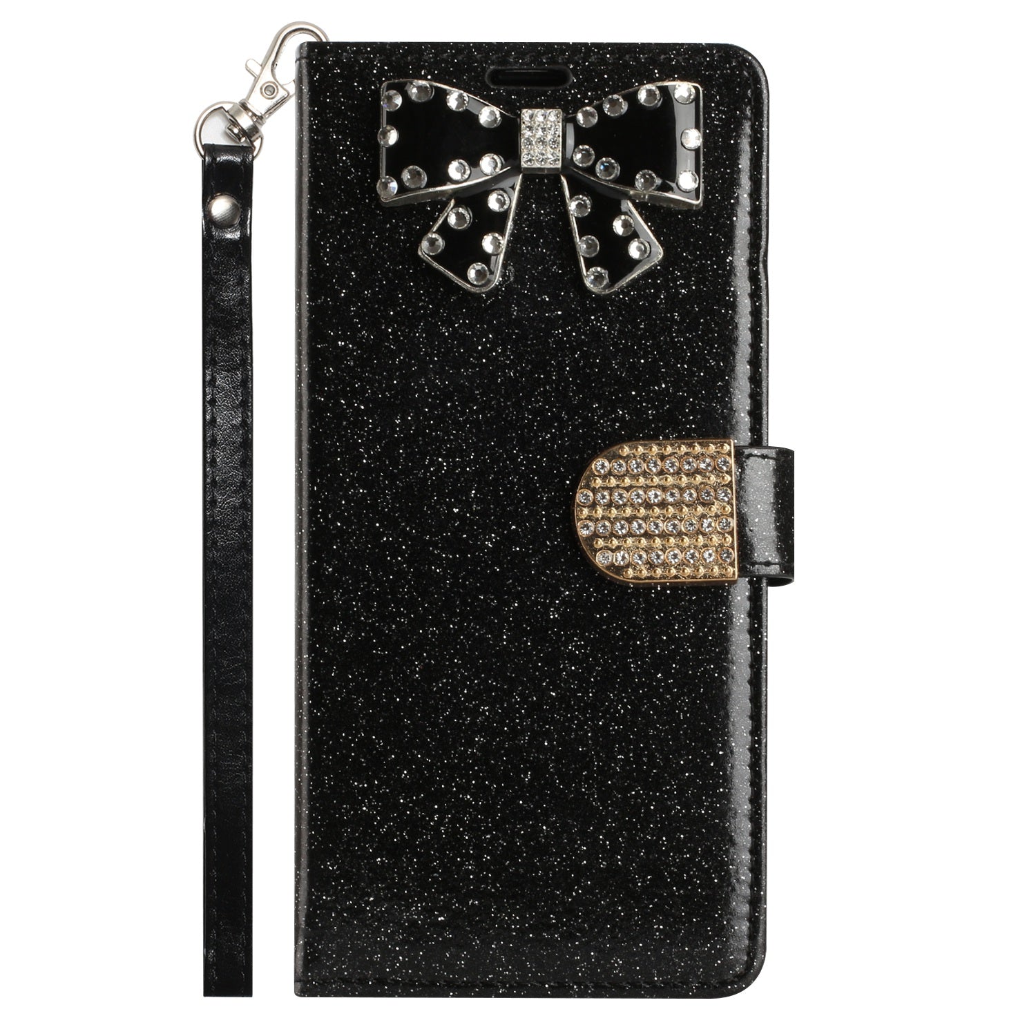 Luxury Wallet Case Bling Glitter Sparkly Girly Folio Leather Pocket Magnet Clasp Phone Case with Card Holder, Strap and Stand