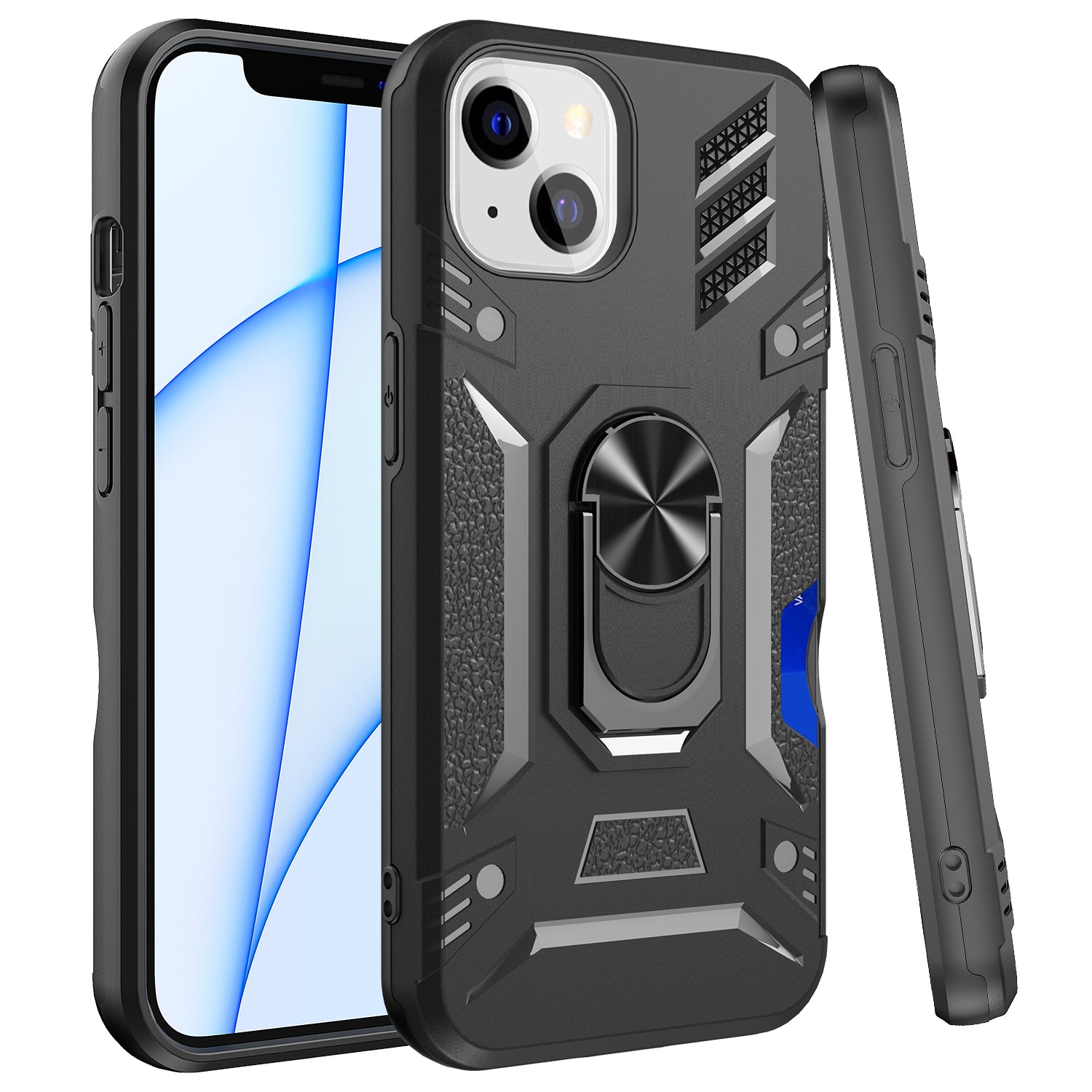 Black Case with Card Holder Slot with Stand Kickstand Ring Slim Heavy Duty Defender Armor Military Grade Silicone Tpu Cover Wallet Cases
