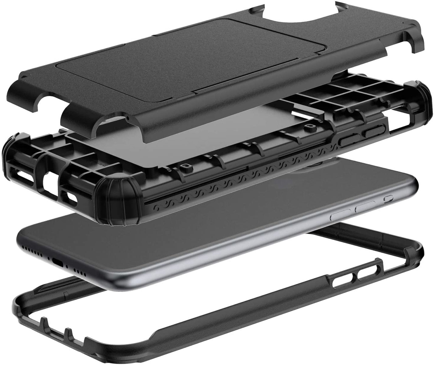 Wallet Case, Credit Card Holder Case, 3 in 1 Shockproof Heavy-Duty Protective Hybrid Cover with Credit Card Slot Holder & Mirror & Kickstand Cover