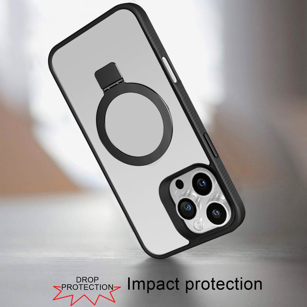 Black Cell Phone Case Cover For iPhone 11 Pro Max Invisible Stand Magnetic Case Military Grade Shockproof Matte Slim Phone Cover Ring Holder [Compatible with MagSafe] Magnetic Circle Stans Phone Cover. The premium case made of high-grade hard PC material, and TPU material bumper to provide shock-proof protection,effectively protect your phone against everyday drops and bumps