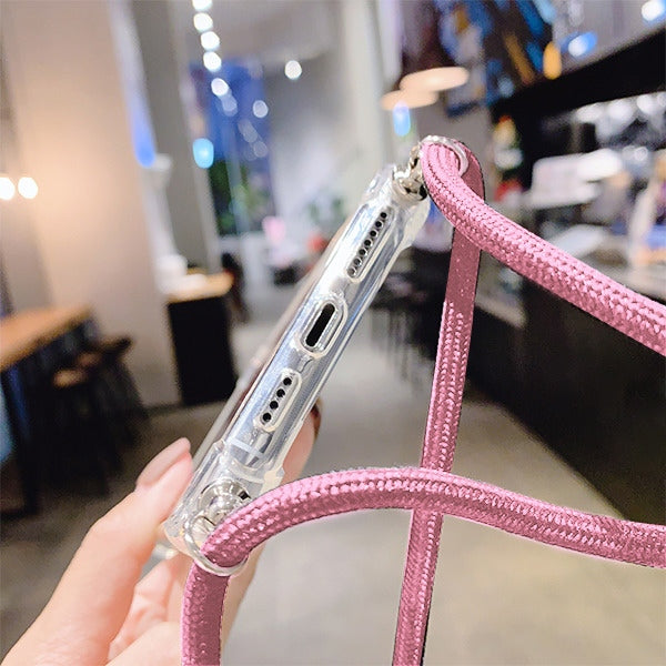For Apple iPhone 11 Pro Max Slim Fit Hybrid Transparent Rubber Gummy Hard PC Soft Silicone with Lanyard Clear / Pink Phone Case Cover