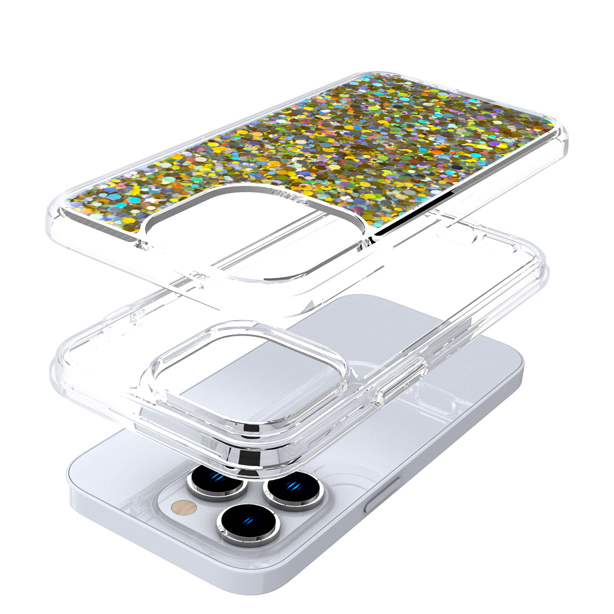 For Apple iPhone 13 (6.1") Colorful Glitter Bling Sparkle Epoxy Glittering Shining Hybrid Hard PC Silicone Shockproof Phone Case Cover