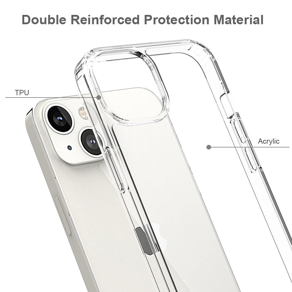 For Apple iPhone 13 / Mini Pro Max Hybrid Transparent Clear Acrylic Back Hard PC & Soft TPU Full Protective Bumper Extra Shock-Absorb Phone Case Cover