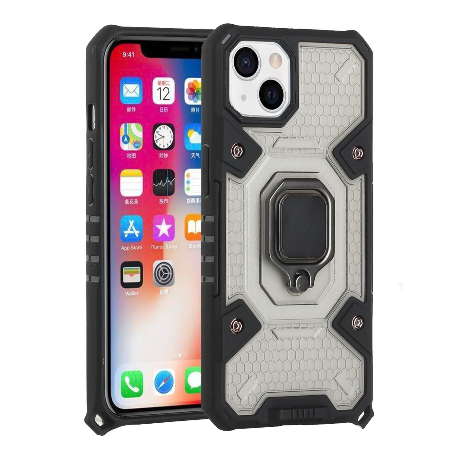 Apple iPhone 13 Pro (6.1") Clear Silicone Shockproof Tuff Hybrid Protection Cover Transparent TPU with Magnetic Ring Kickstand