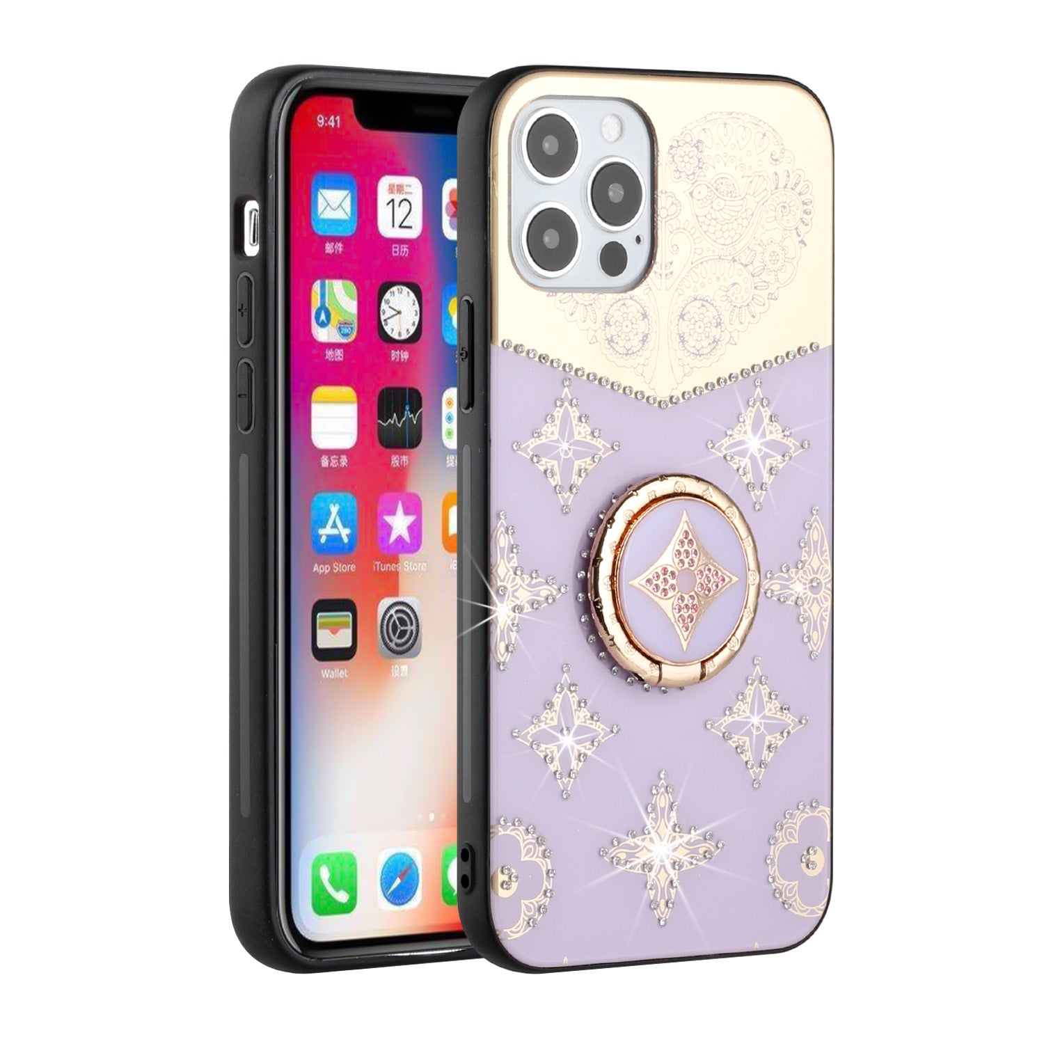 Apple iPhone 13 Pro (6.1") Diamond Bling Sparkly Glitter Ornaments Engraving Hybrid Armor with Ring Stand Holder Rugged Fashion