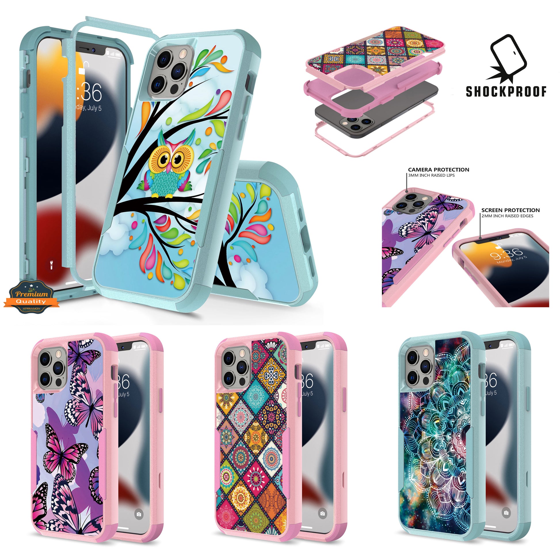 • SHOCK / DROP / DUST PROOF: Hard plastic inner polycarbonate (PC) shell and soft rubber silicone outer TPU construction absorbs shock and impact offering a good grip dropproof design, plus raised-up edges protect the phone screen and the camera from scratches. Dustproof ports will protect your cellphone from dust, dirt and debris.