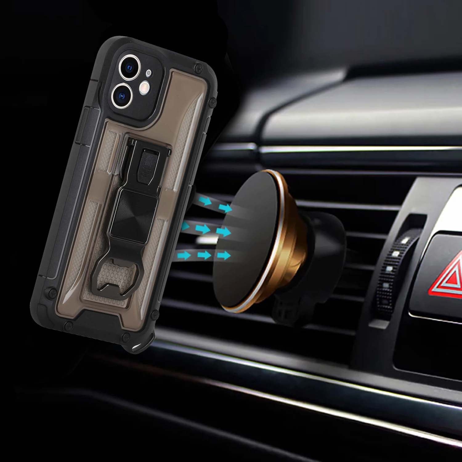 • Phone case with built-in bottle opener magnetic kickstand, car navigation, stand holder for open the bottle, horizontal or vertical phone holder for hands-free viewing bring you convenience. [Not include magnetic car mount.]