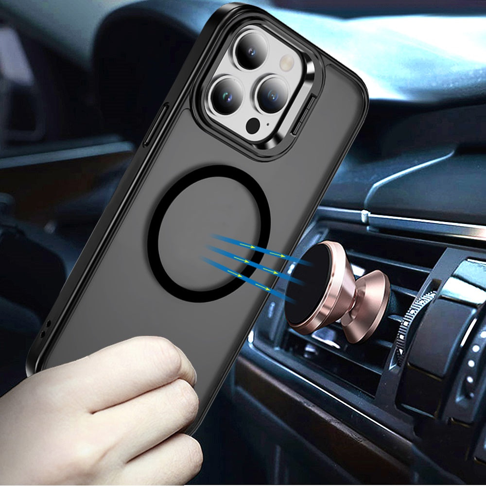 Black Phone Case Cover For iPhone 13 Pro Upgrade your phone with this Fearless Tough HQ Metallic Hybrid Case, designed for superior drop protection and durability. Featuring a built-in camera ring stand, it offers hands-free convenience and extra lens security. With MagSafe compatibility, enjoy seamless wireless charging and secure attachment to MagSafe accessories. The rugged hybrid design combines a hard back with soft edges, providing shockproof protection against drops and impacts. Precision cutouts ensure effortless access to all ports and buttons, while the sleek metallic finish enhances your phone's style. Stay protected without compromising on style and functionality!
