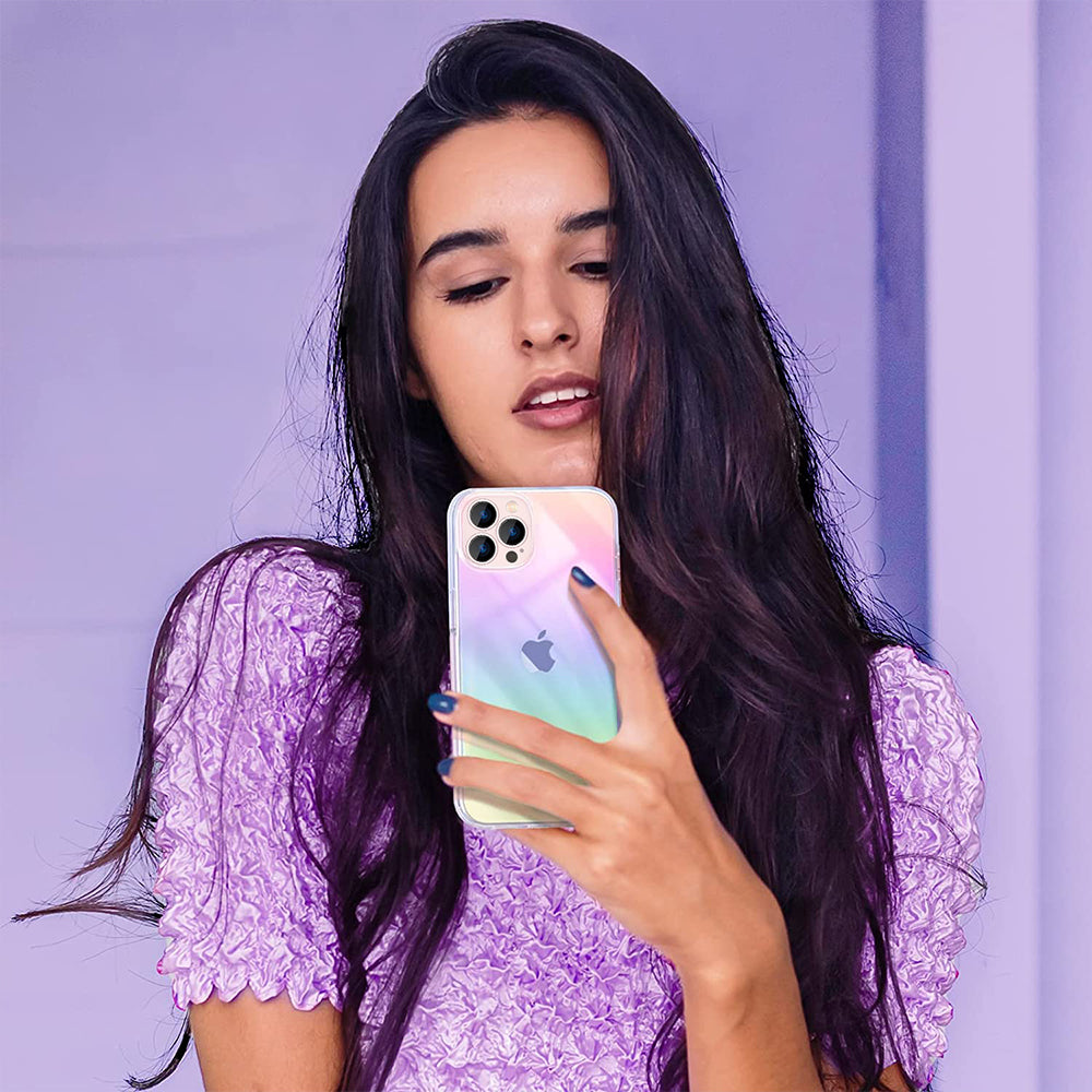 Rainbow Iridescent Rainbow Stylish Holographic Effect Clear Colorful Skin Iridescent Fashion Ultra-Thin Protective Shockproof Bumper Cover Soft TPU and Hard PC Shockproof Case