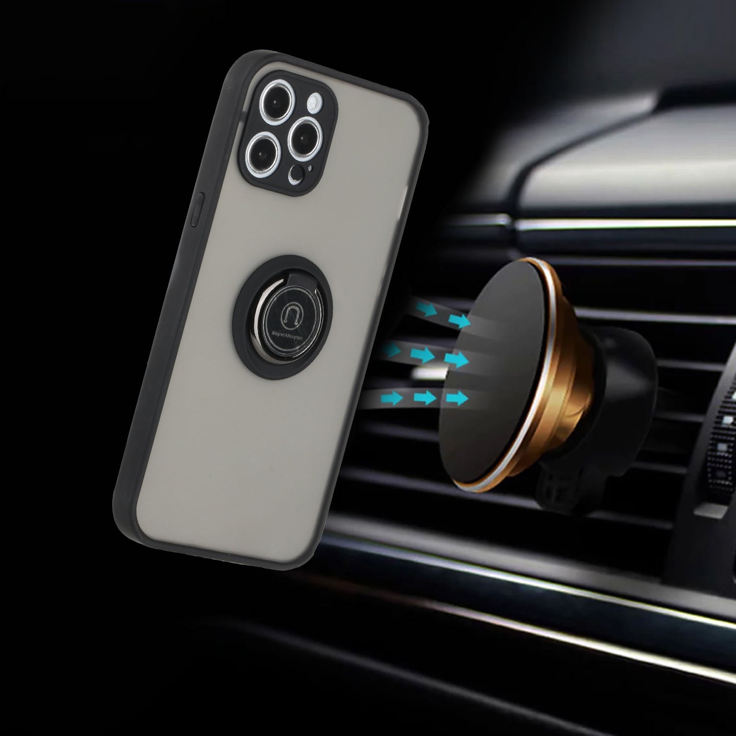 Premium Frosted Hybrid PC TPU with Magnetic Metal Ring and Covered Camera (Not Lens) 360 Degree Rotation Finger Ring Kickstand Work with Magnetic Car Mount Heavy Duty Protector Cover