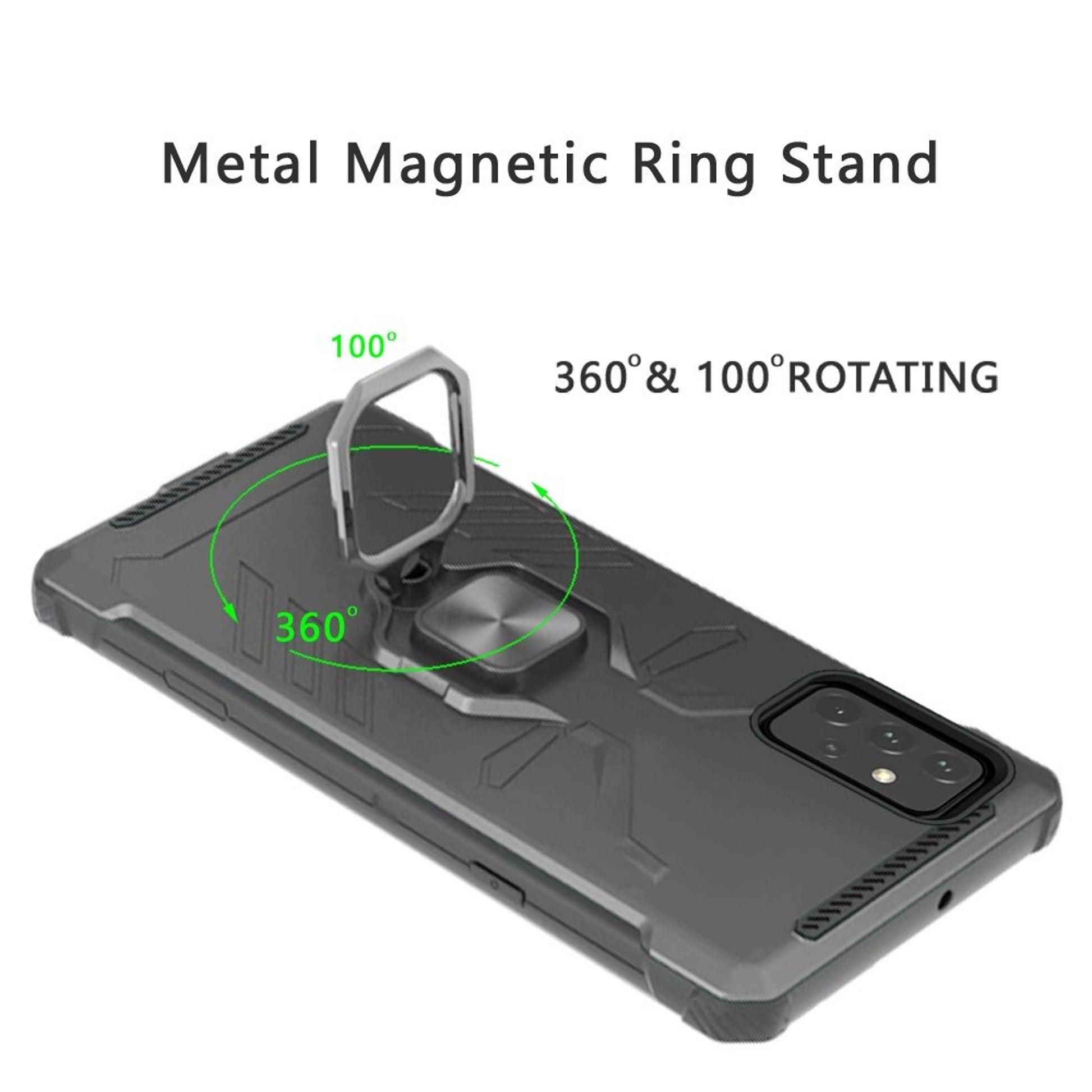• Metal Kickstand and Magnet: Humanized design,Built-in folded bracket,kickstand is perfect for viewing, for hands-free movie viewing, video, pictures, etc.Metal ring can release your hand to ensure a phone safe. Magnet can put on navigation holder when you drive a car. To give you a safer and more convenient trip. (Not includes the magnetic car mount holder)