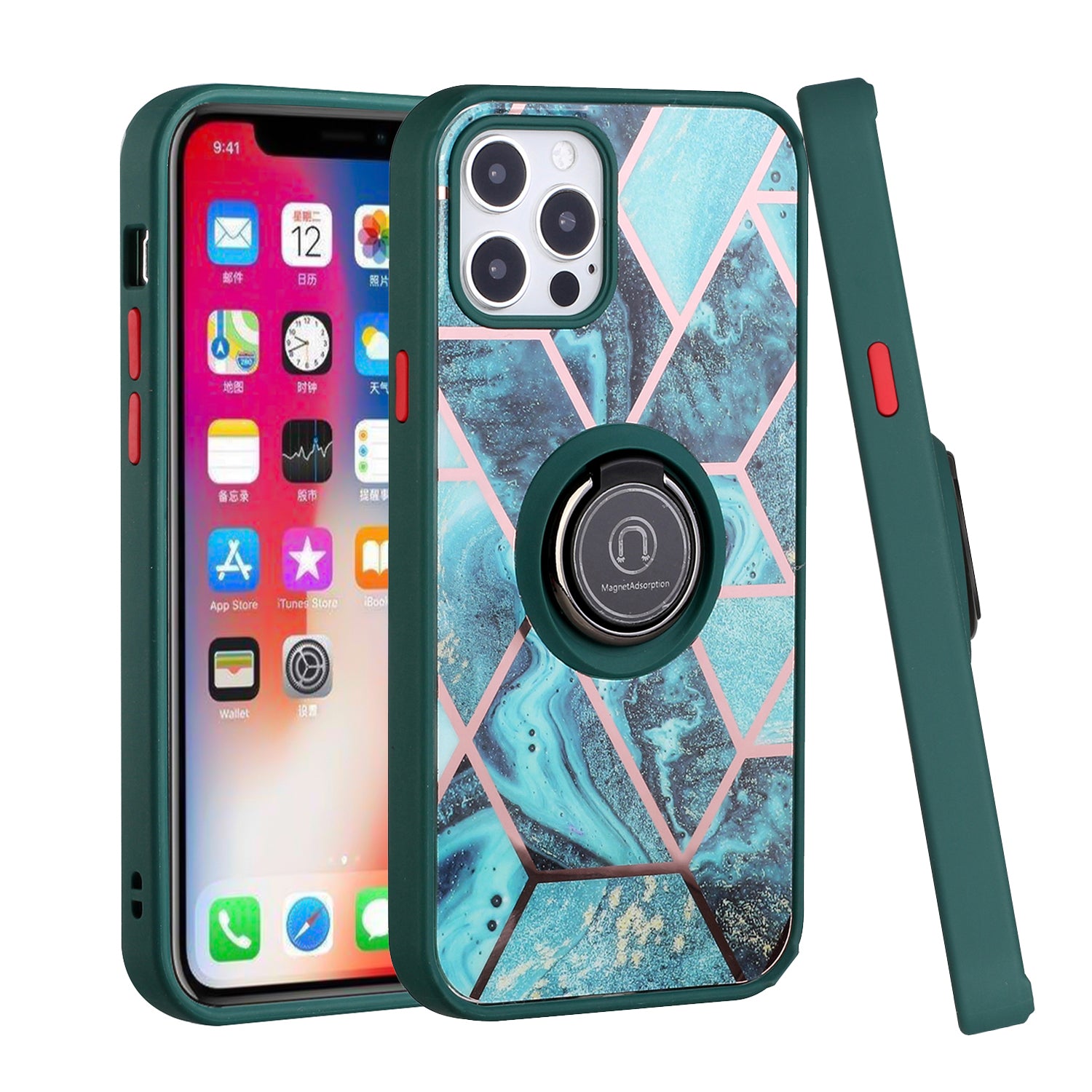 For Apple iPhone 13 /Pro Max Mini Unique Marble Design with Magnetic Ring Kickstand Holder Hybrid TPU Hard PC Shockproof Armor Bumper Phone Case Cover