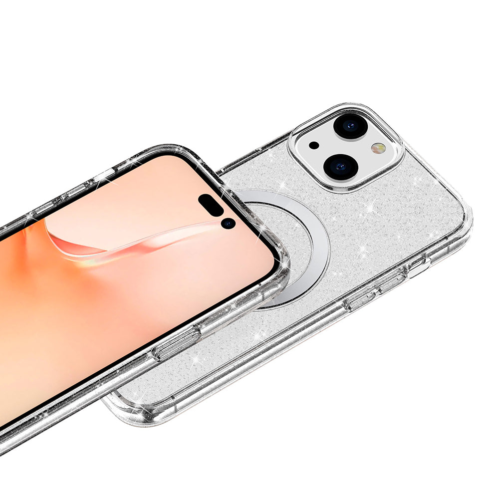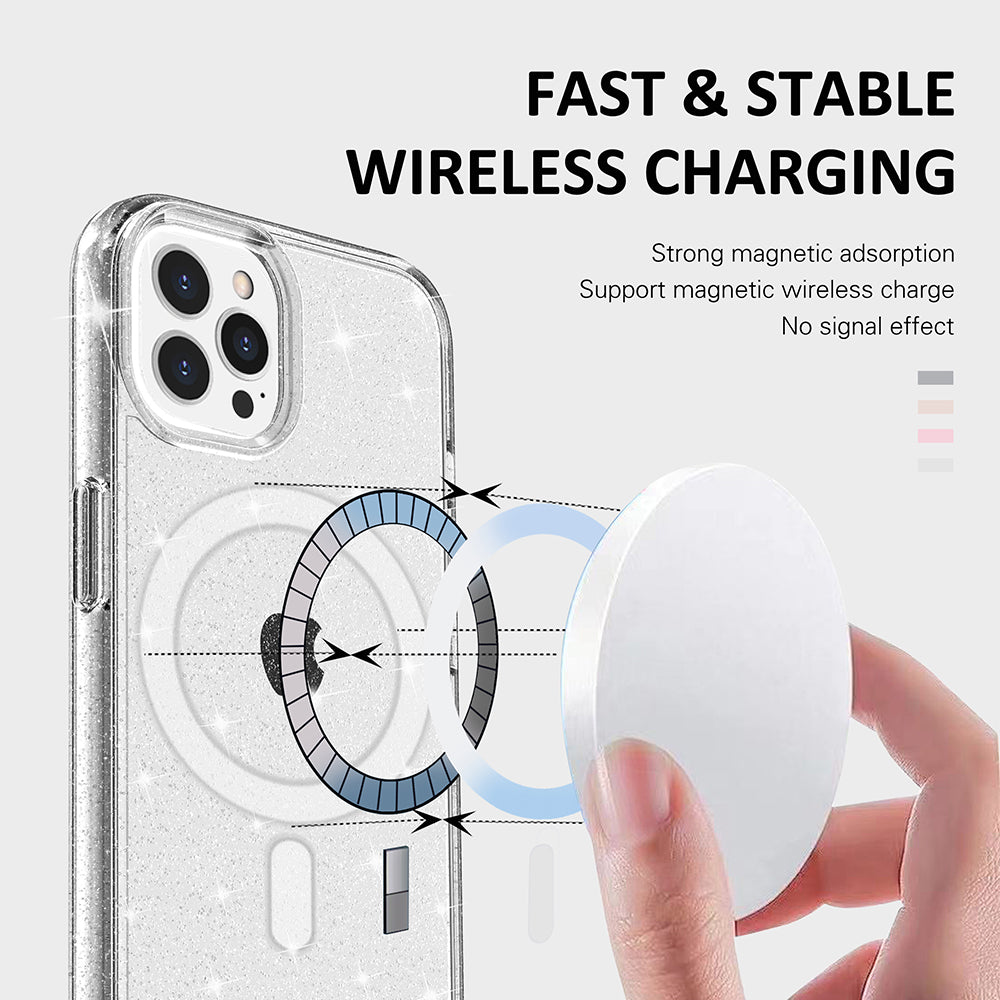 Ultra Thick Clear Protective Case with High Quality TPU Full Transparency Bling Glitter Design with MagSafe Wireless Charging Compatible Design Hard PC Back Shockproof Cover