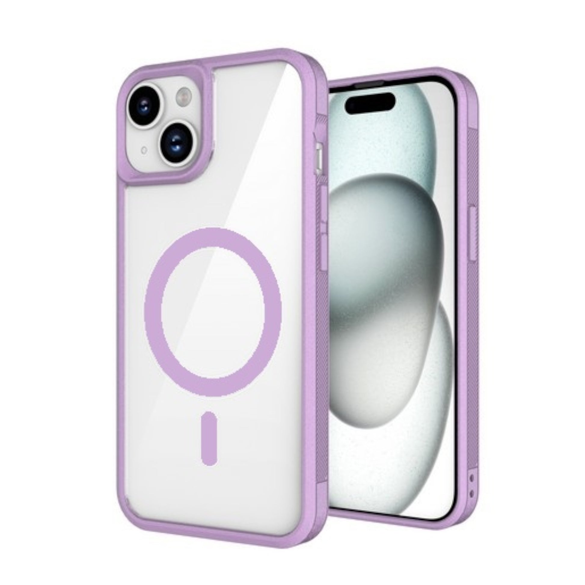 For Apple iPhone 15 (6.1") Magnetic Clear Compatible with Magsafe Wireless Charger PC + TPU Hybrid Slim Transparent Purple Phone Case Cover