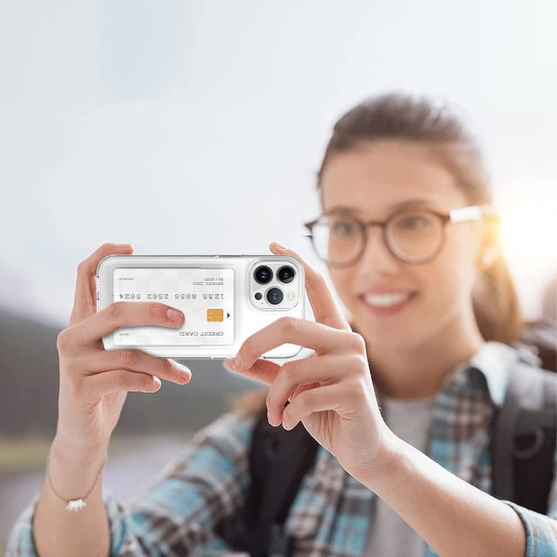 Clear Wallet Designed, Slim Thin User Friendly Anti-Yellowing TPU Protective Back Wallet Credit Card Holder Pocket Case Phone Cover
