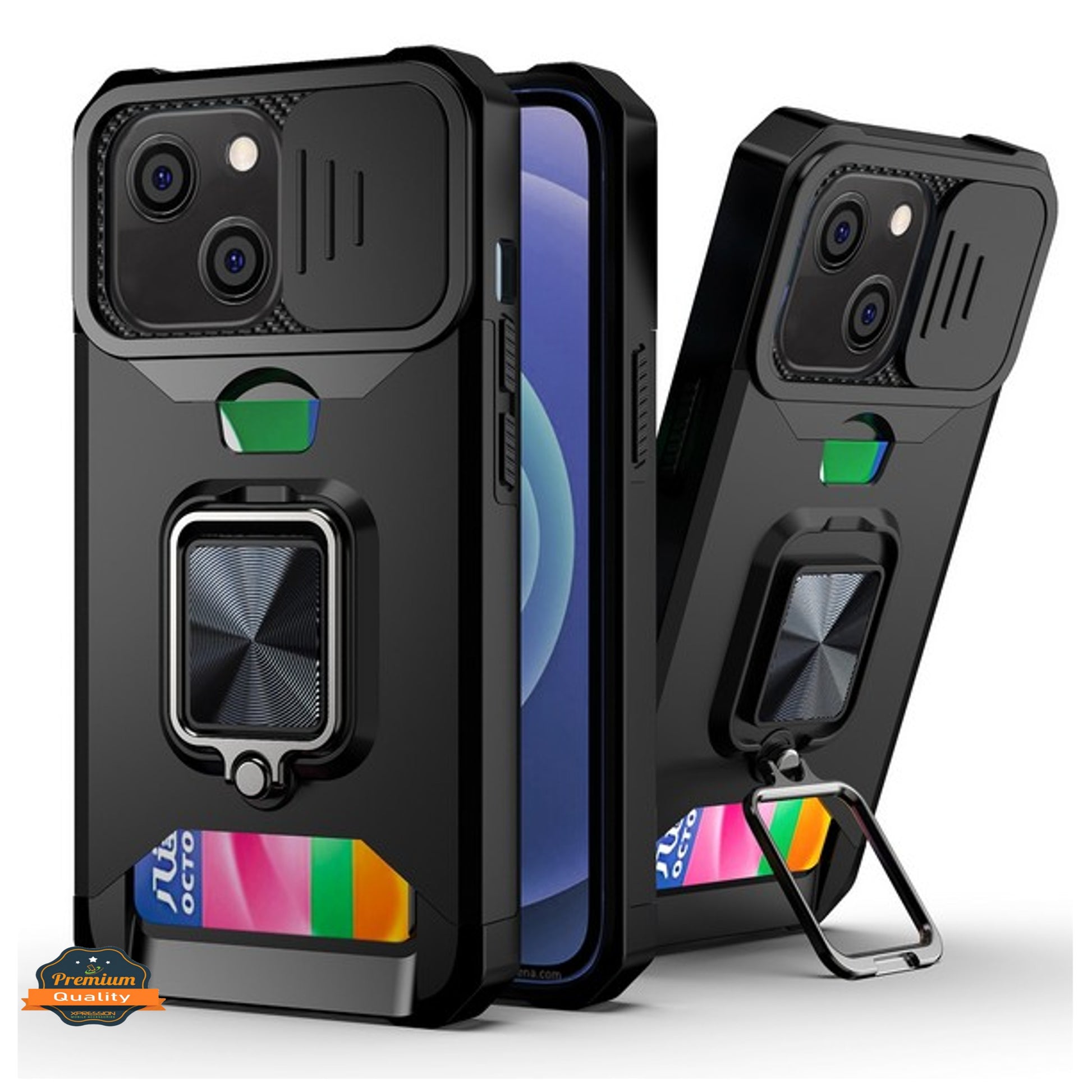 Premium Wallet Cases with Sliding Camera Cover,Invisible Credit Card Holder Slot Storage and Magnetic Kickstand Ring, Heavy Duty Hybrid Military Grade Cover [Magnetic Car Mount Holder is Not included]