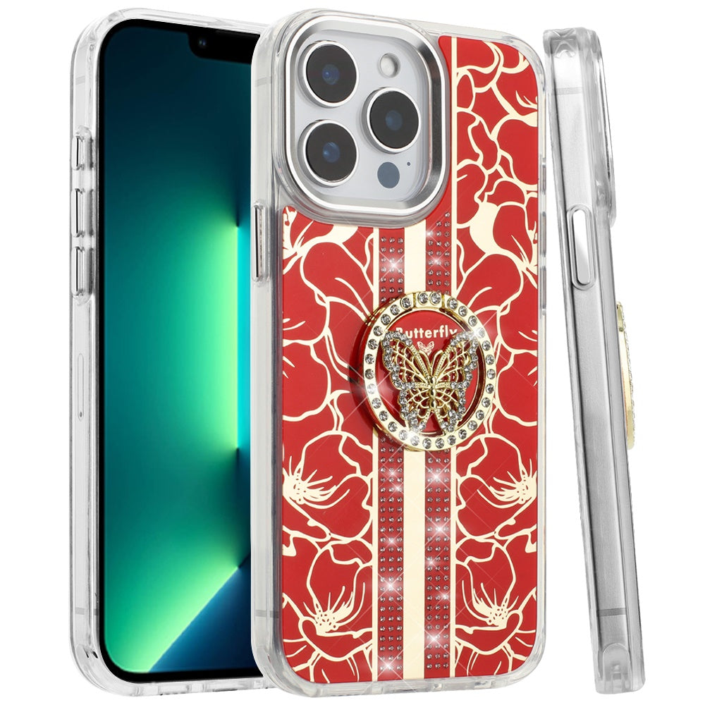 Phone Case Cover For iPhone 15 Pro Max Add charm and protection to your phone with this beautifully crafted floral case featuring a stylish butterfly ring stand. Designed with durability in mind, it includes a metal camera frame and precision metal buttons that enhance both protection and usability. The built-in ring stand allows for comfortable handling and convenient viewing, while the slim profile ensures compatibility with wireless charging and easy daily use.