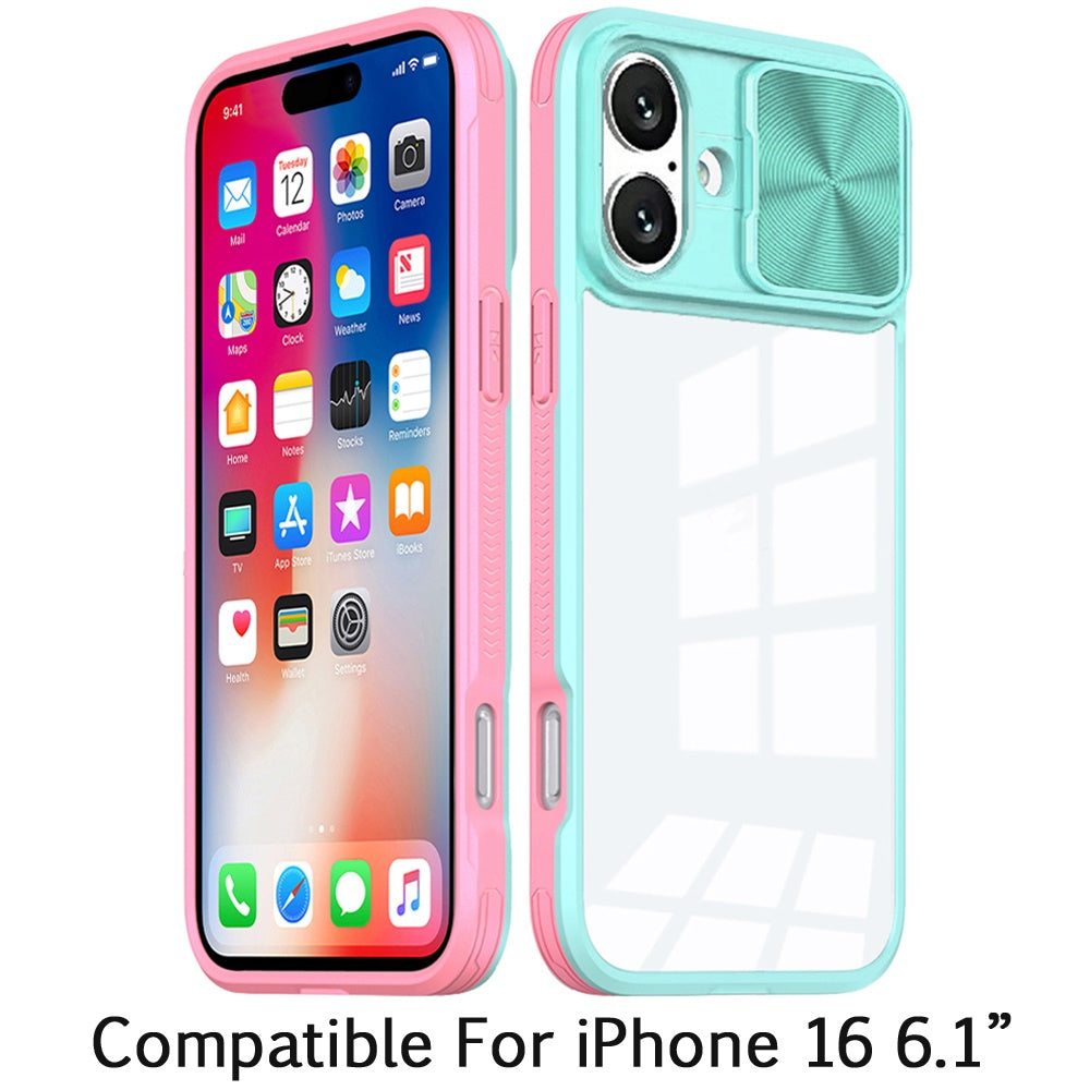 For Apple iPhone 16 (6.1") Hybrid Cases with Sliding Camera Cover Transparent Shockproof Bumper TPU Protective Case Cover