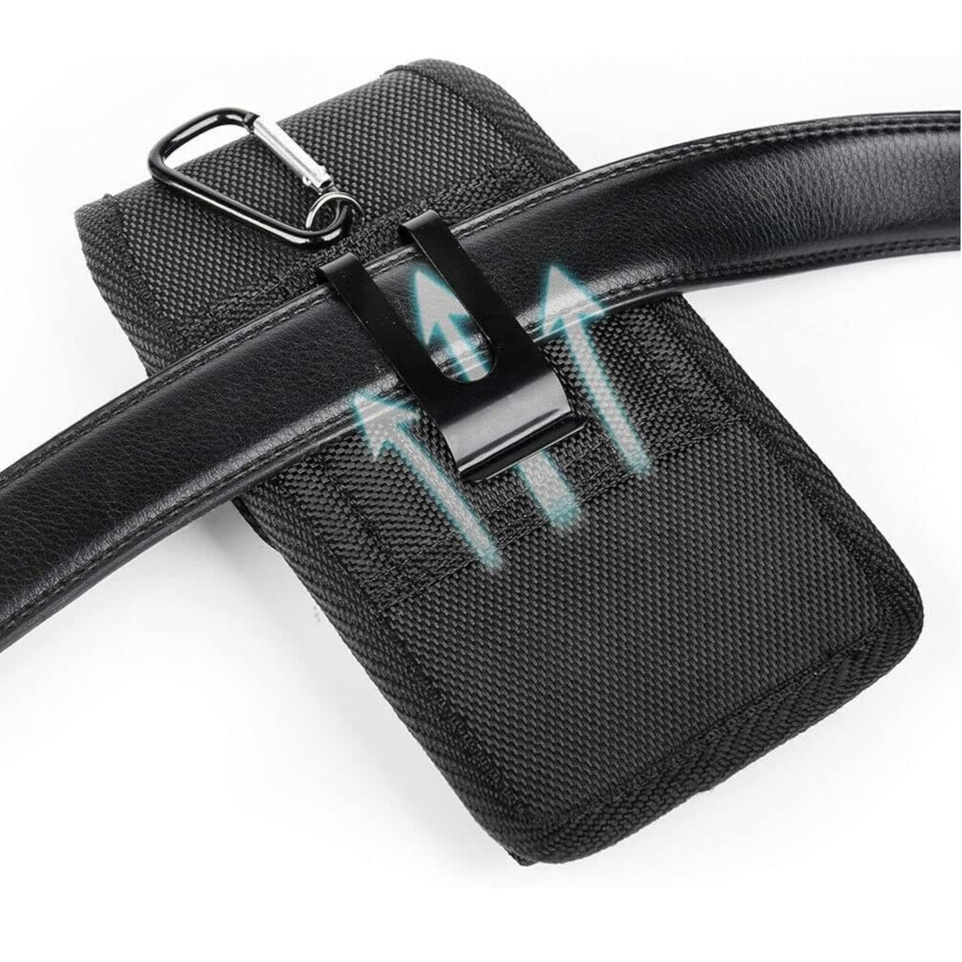 • Metal belt clip for quick clip-on/remove the pouch from belt, or run the belt through the pu leather loops to secure the pouch.