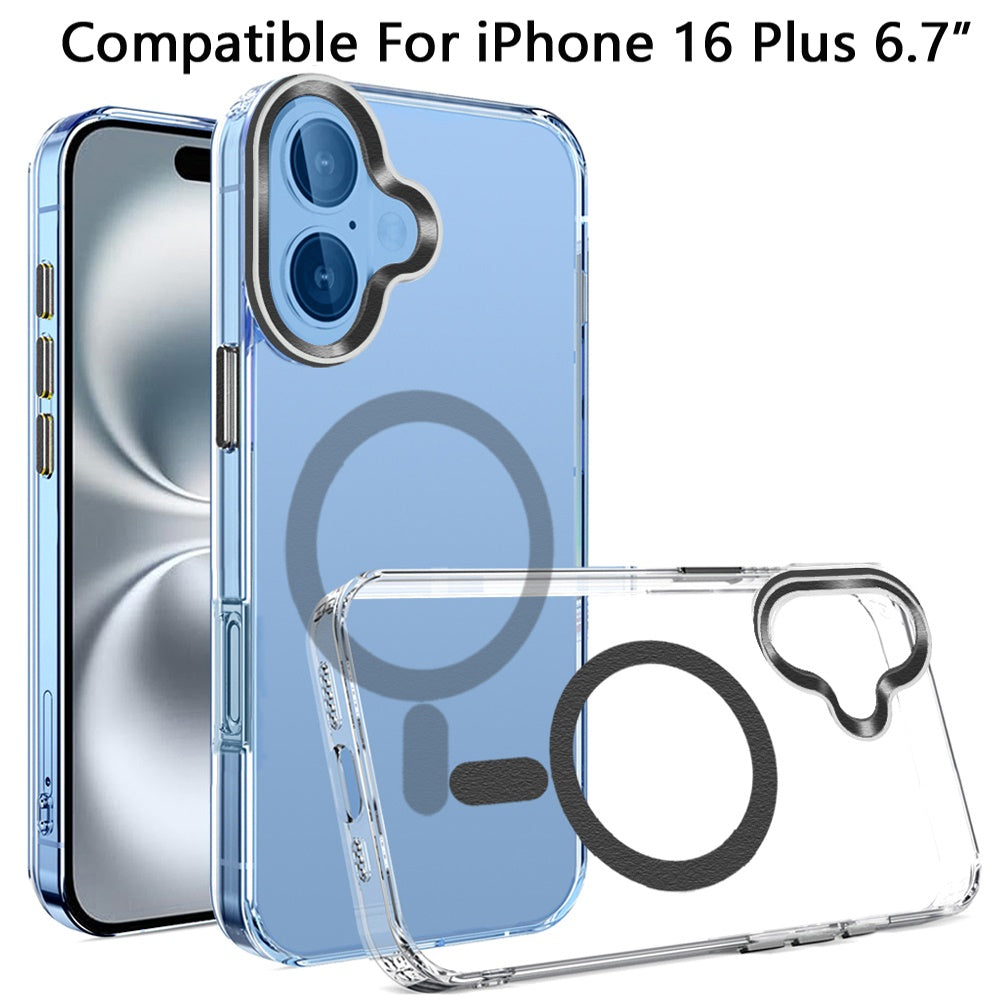 For Apple iPhone 16 Plus (6.7") Clear Transparent Matching Circle Design Hybrid TPU Hard Shockproof [Support Magsafe Charger] Case Cover
