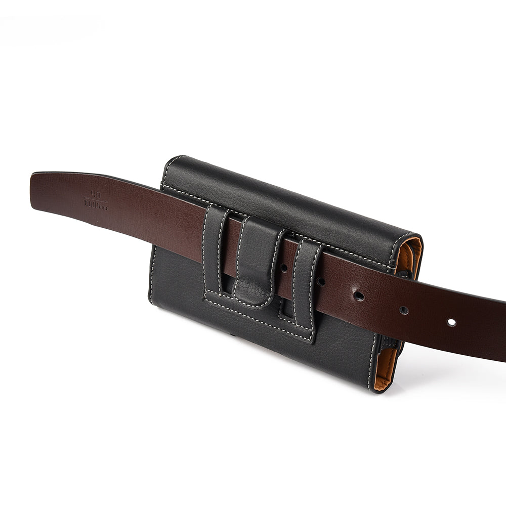 • Safely carry your phone with this Horizontal Carry Case. Premium leatherette and high-quality construction with black color stitching and sealed seams for durability and classic good looks.