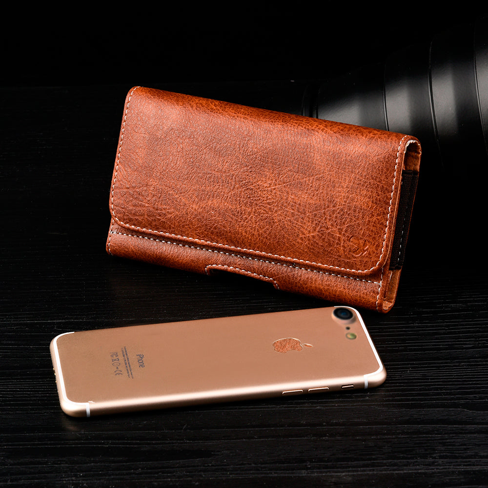 Brown Universal Horizontal Pouch Case Phone Holder with Belt Clip Holder Loop and Credit Card Slots Heavy Duty Carrying on Pouch Cover Fit Extra Large Phone Device
