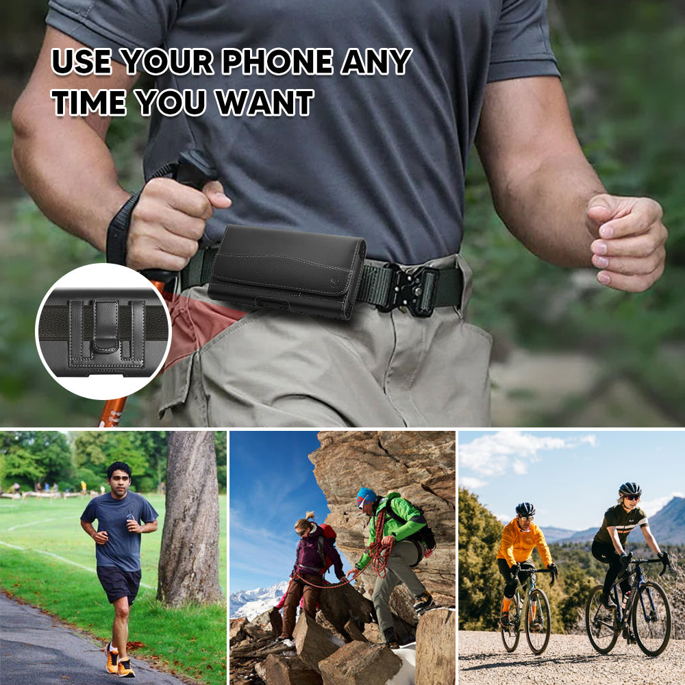 • Introducing our Premium Horizontal Leather Case Pouch Holster ?C designed with convenience and style in mind. This holster features a magnetic closure, belt clip, and belt loops, along with built-in slots for bank cards and additional compartments for memory cards, SIM cards, or Swatch cards.