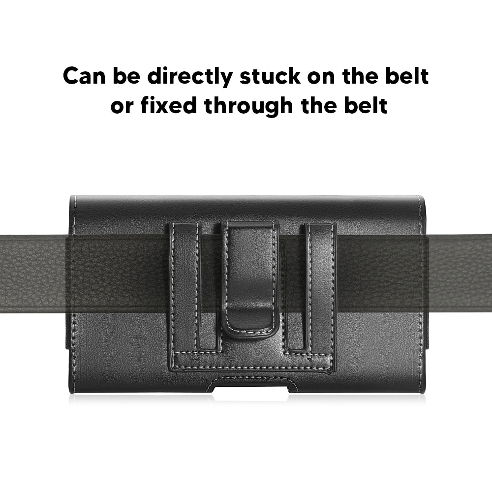 Universal Horizontal Pebble Leather Pouch Phone Holster with Belt Clip, Belt Loops and Dual Credit Card ID Slots Storage Holder Cover