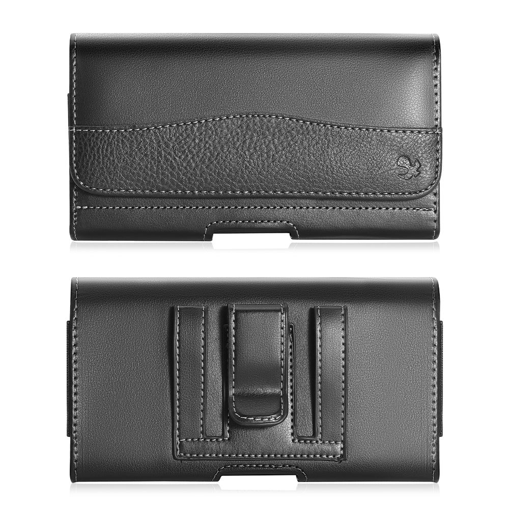 Black Universal Horizontal Pouch Case Smooth Pebble Leather Phone Holder with Belt Clip Holder Loop and Credit Card Slots Heavy Duty Pouch Cover Fiit Large Phone Device