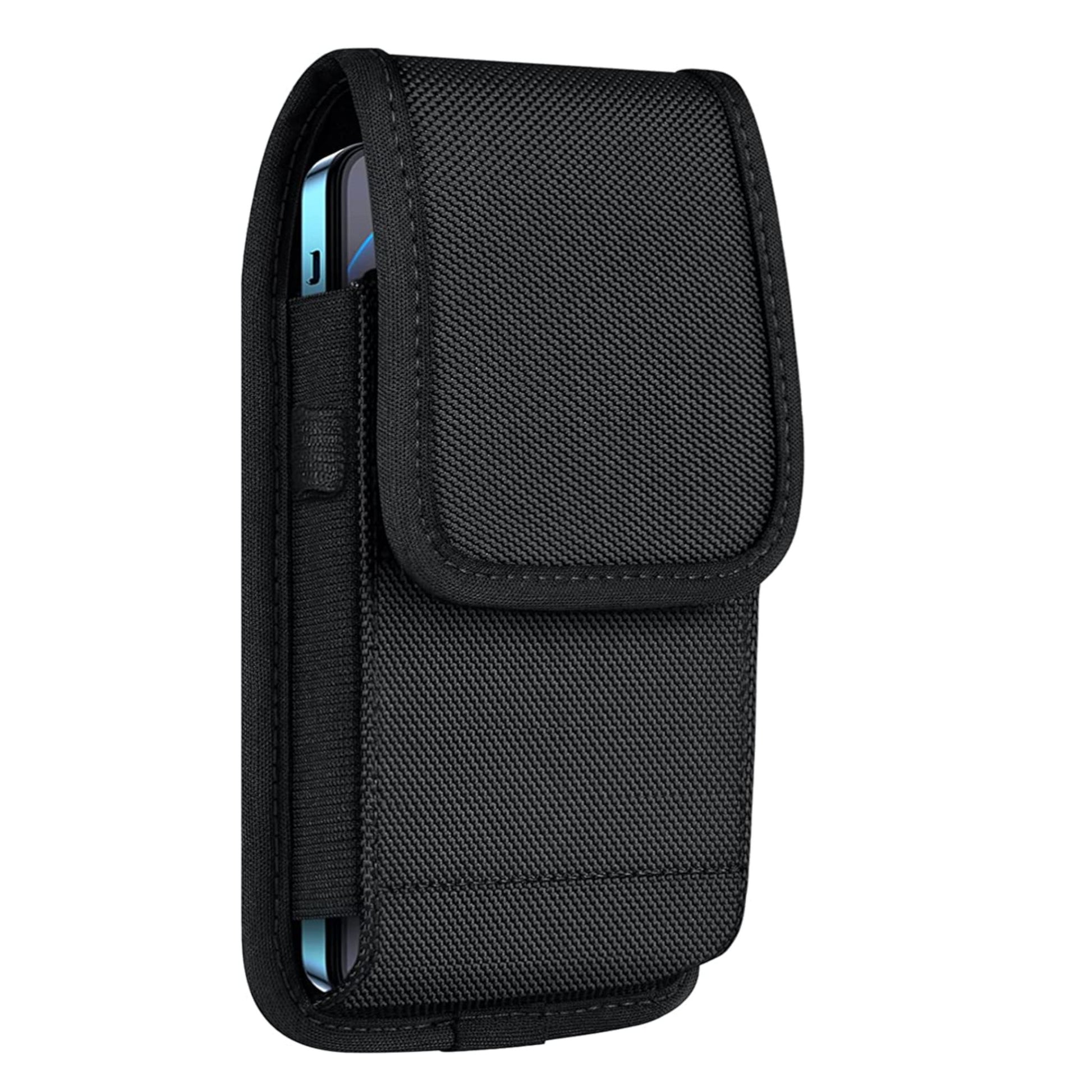 Universal Vertical Case Canvas Nylon Pouch with Secure Belt Clip, Belt Loops Cellphone Holster Rugged Military Grade Phone Cover