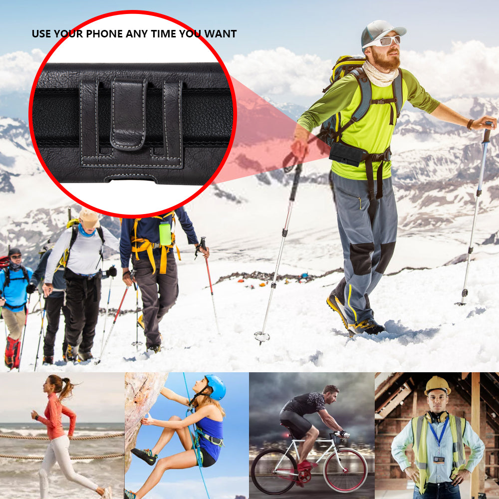 Universal Horizontal PU Leather Phone Carrying Holster Belt Case Magnetic Closure with Belt Clip & loop Pouch ID Card Holder Cover, Fit XXL Device