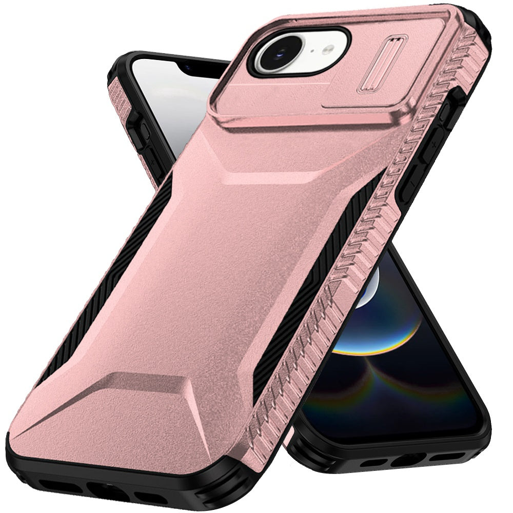 For Apple iPhone 16e Slim Fit Shockproof Hybrid with Slide Camera Window Covering, Rugged Tpu Silicone Hard PC Bumper Case Cover Rose gold