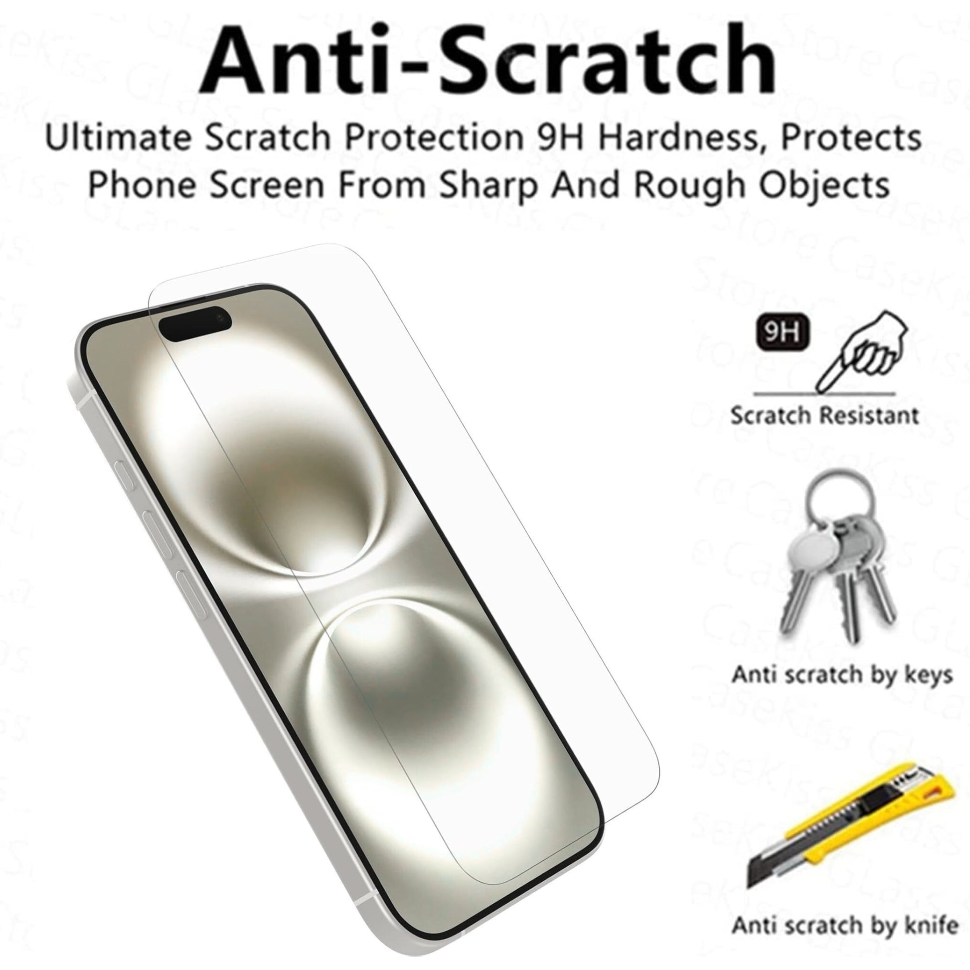• Compatible for Apple iPhone 17 / 17 Air / 17 Pro / 17 Pro Max, Tempered glass material with 9H hardness for ultimate screen protection, Ultra-clear transparency ensures HD screen visibility and vibrant colors, Full glue adhesive for bubble-free and secure installation, Scratch-resistant surface protects against everyday wear and tear, Easy-to-install design with included accessories ensures hassle-free setup