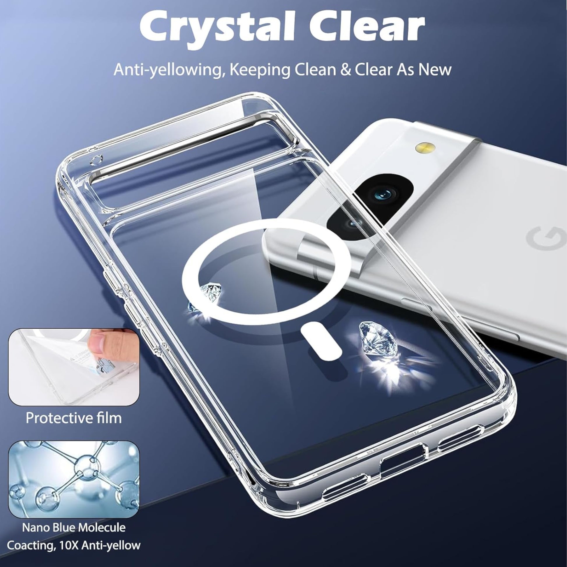 • Clear Back Magnetic Phone Case Compatible with Magsafe Charging & Accessories Military-Grade Protection, Hard PC Back + Rubber TPU Frame Protective Cover