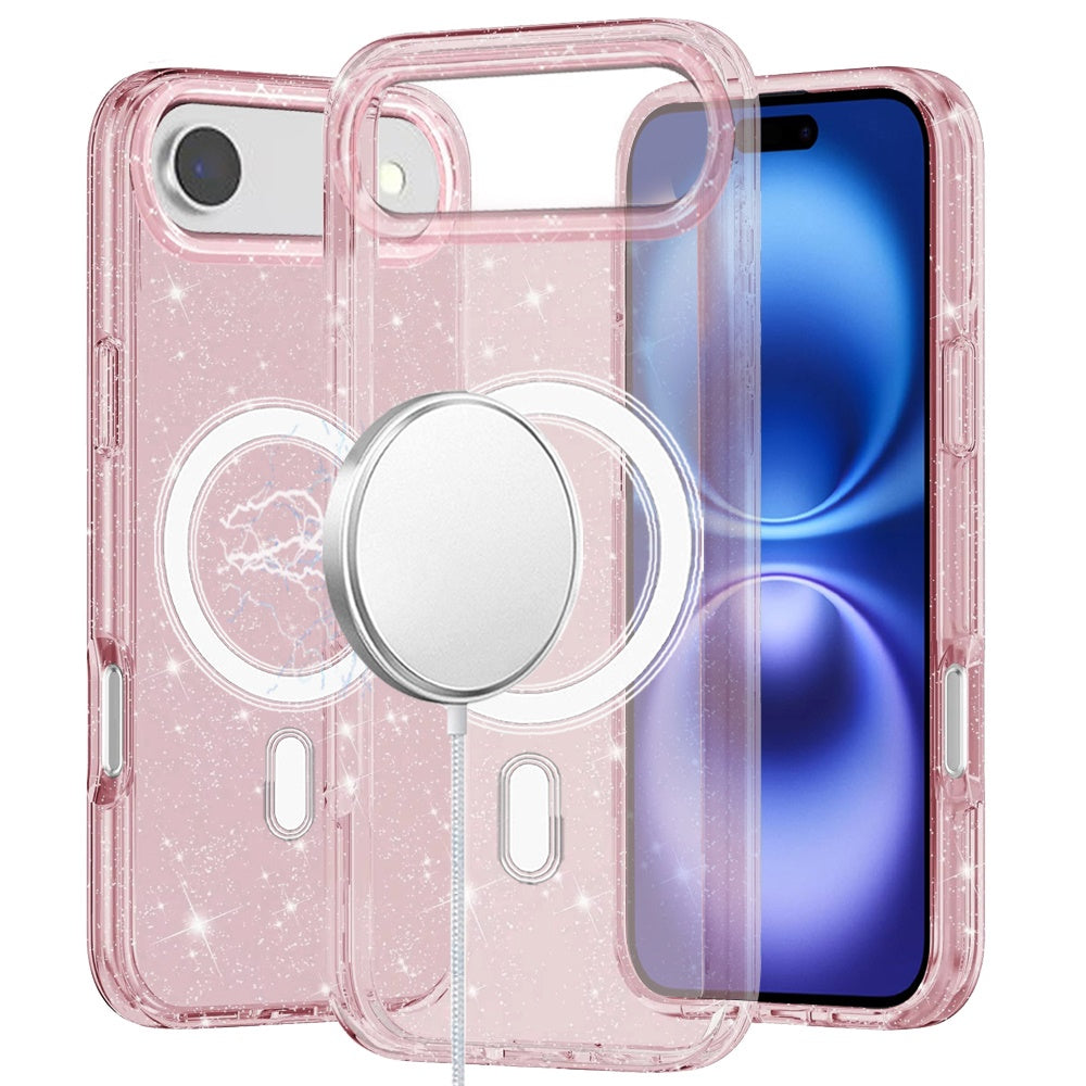 Pink Phone Case Cover For Apple iPhone 17 Air (6.6") Add a touch of sparkle to your phone with this MagSafe-compatible glitter hybrid case. Featuring a magnetic circle for seamless charging, this case combines a shiny bling design with durable TPU rubber and a hard PC back for reliable protection. The slim and lightweight frame ensures a sleek fit while providing shockproof and scratch-resistant performance, making it both stylish and functional.