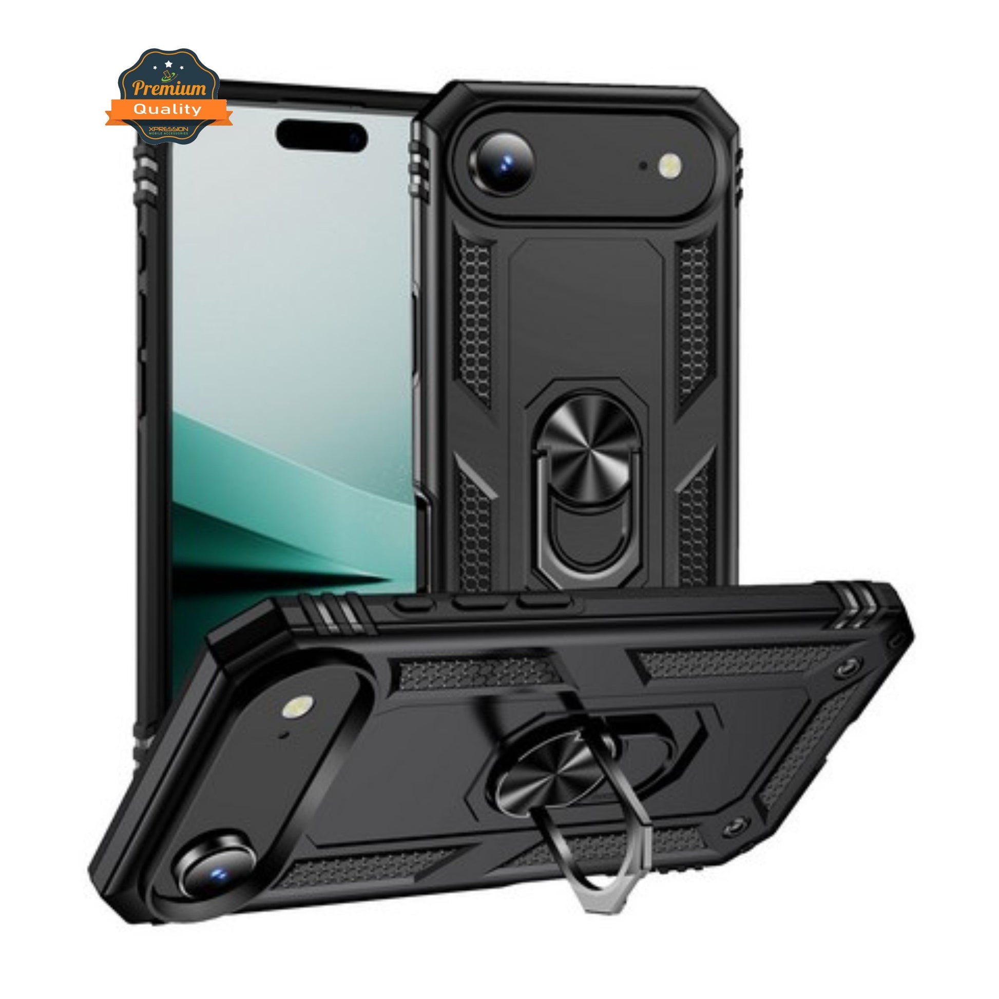 Phone Case Cover For Apple iPhone 17 Air (6.6") This phone case combines both durability and convenience. The dual-layer PC + TPU hybrid design offers shockproof protection while the heavy-duty armor shell guards your phone from drops and impacts. The built-in metal kickstand provides hands-free viewing, and the premium magnet ring stand ensures compatibility with magnetic car mounts. With raised edges for extra protection around the screen and camera, this case offers full protection while maintaining a slim, sleek profile.