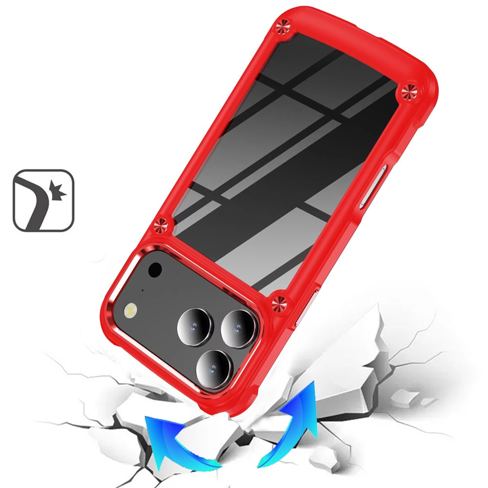 For Apple iPhone 17 Pro Max Hybrid Transparent Rubber with Metal Buttons & Camera Edges Hard TPU Corner Frame Bumper Case Cover