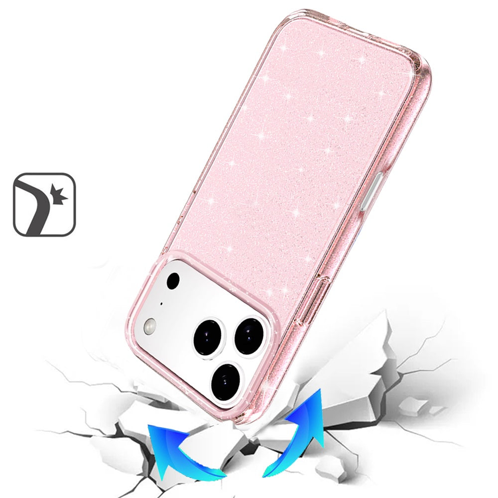 For Apple iPhone 17 Pro Max Transparent Glitter Shiny Sparkle Bling TPU Rubber Hard Back Hybrid Frame Shockproof Case Cover