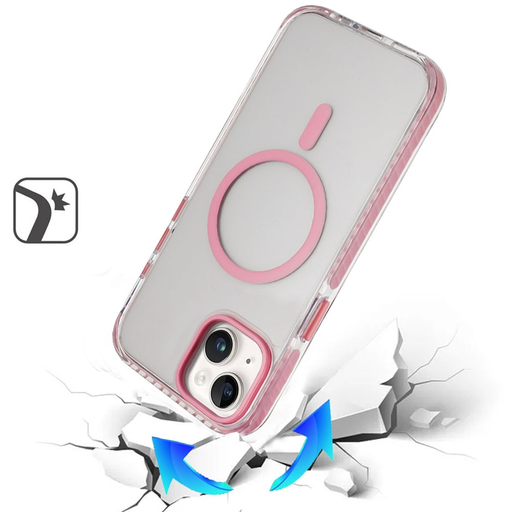 For Apple iPhone 17 Pro Max Transparent Hybrid with Color-Matched Magnetic Circle, Rubber TPU Frame Hard PC Shockproof Case Cover Pink